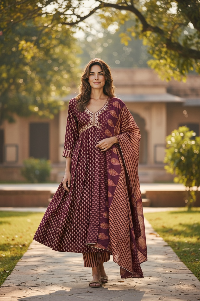 Made from high-quality cotton and adorned with a beautiful block print design, the Aaliya cut suit is the perfect addition to your wardrobe. This traditional yet stylish suit is crafted to provide ultimate comfort and effortless elegance for any occasion. Experience the beauty and comfort of Aaliya today.
