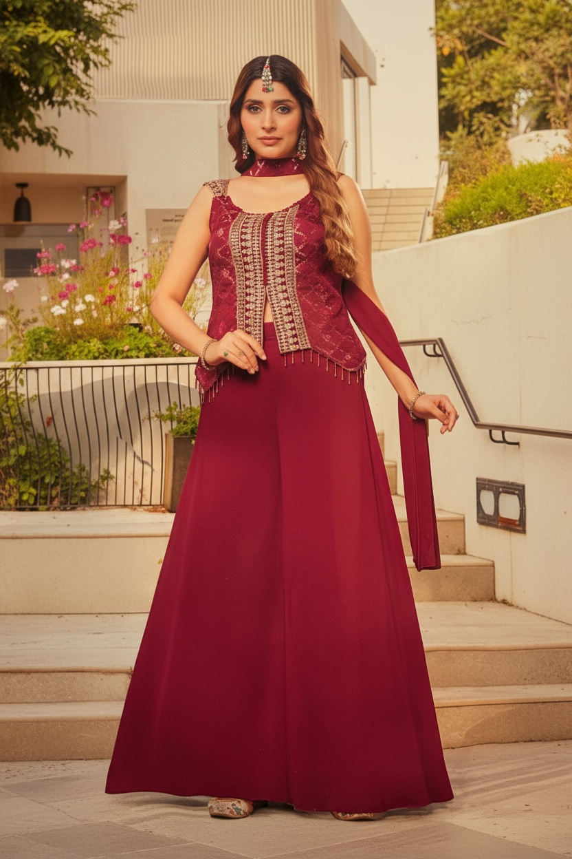 Banarasi silk sharara suit