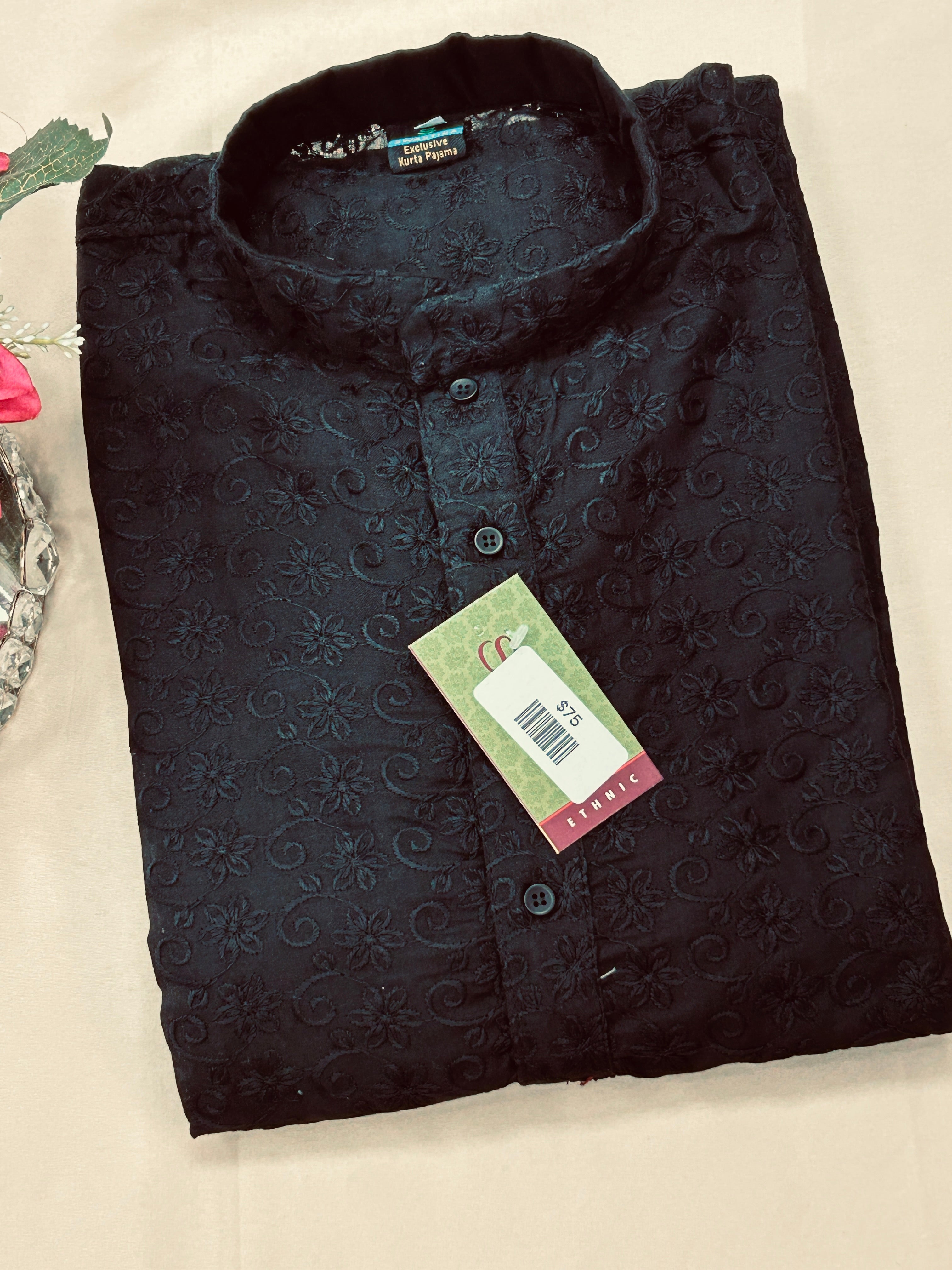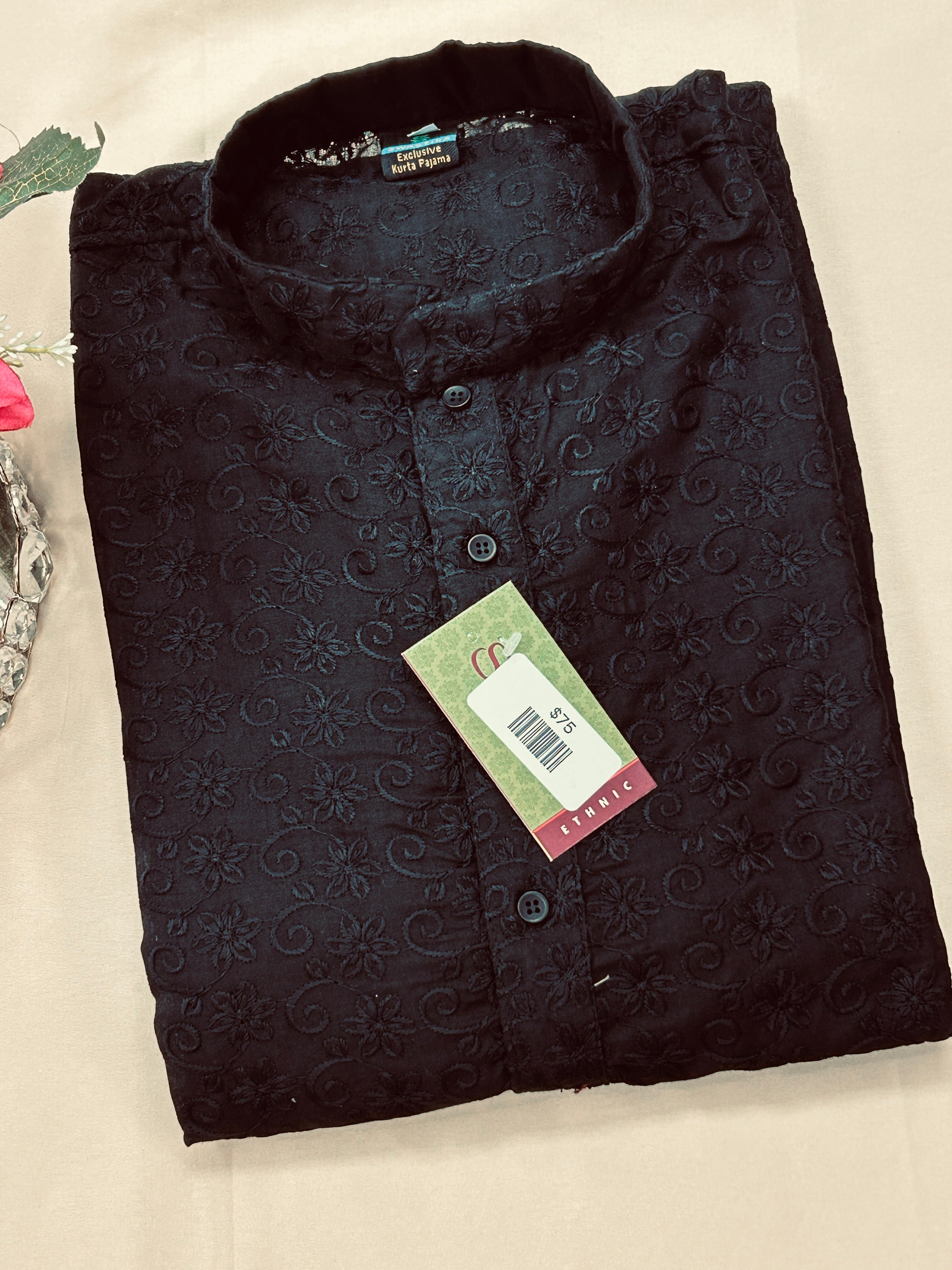 Product form Black cotton chikankari Kurta set $75.00 Free pickup in our shop(s) Size 42 Barcode: 26612837 1 in stock Show extra info for delivery time Add to cart This item is a recurring or deferred purchase. By continuing, I agree to the cancellation policy and authorize you to charge my payment method at the prices, frequency and dates listed on this page until my order is fulfilled or I cancel, if permitted. Reviews 0 reviews Share with your friends Share WhatsApp Deel X Pin it Messenger Email Need help with your size? Size finder