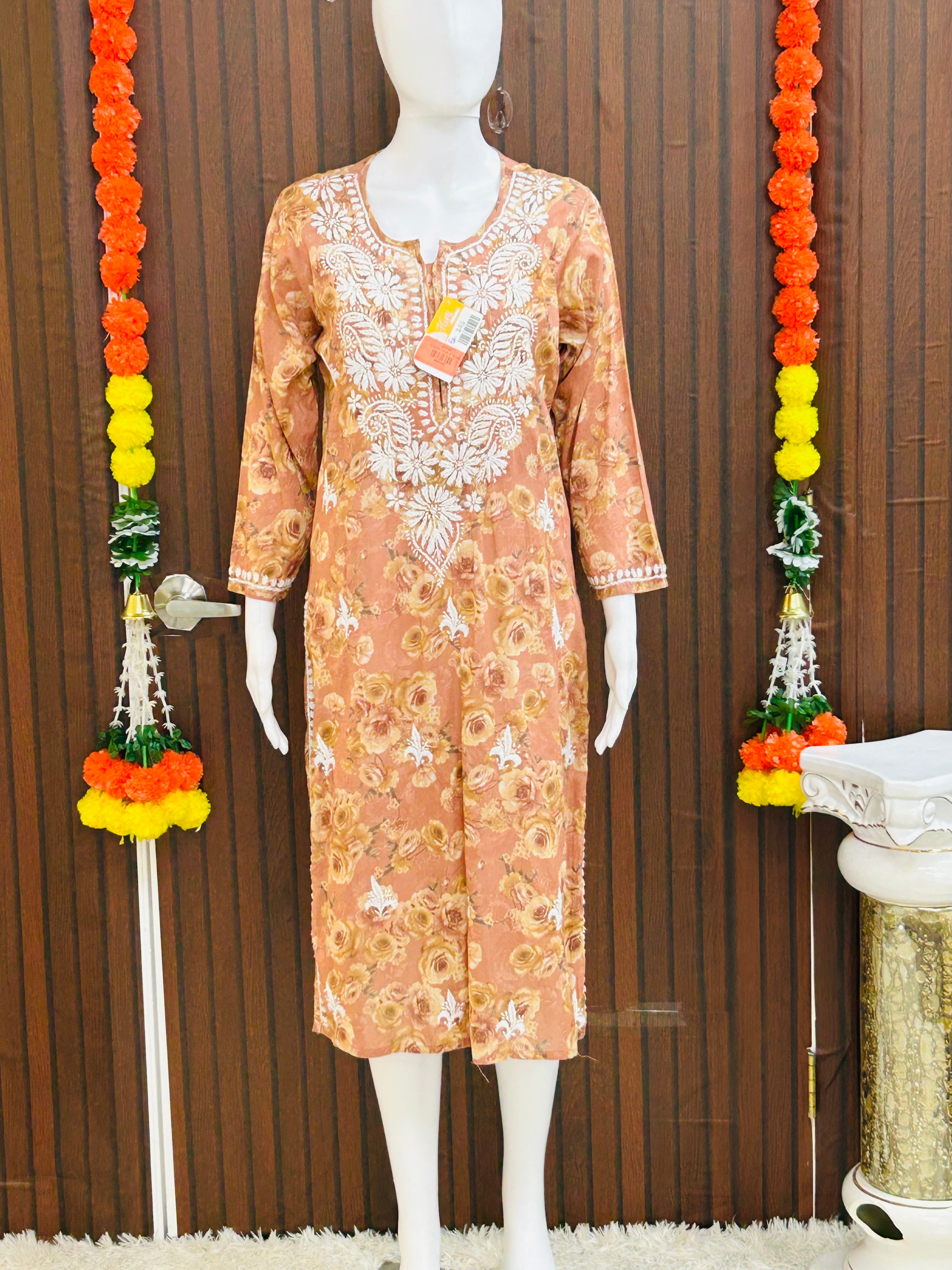 Cotton chikankari (Lukhnowi) embroidered kurti