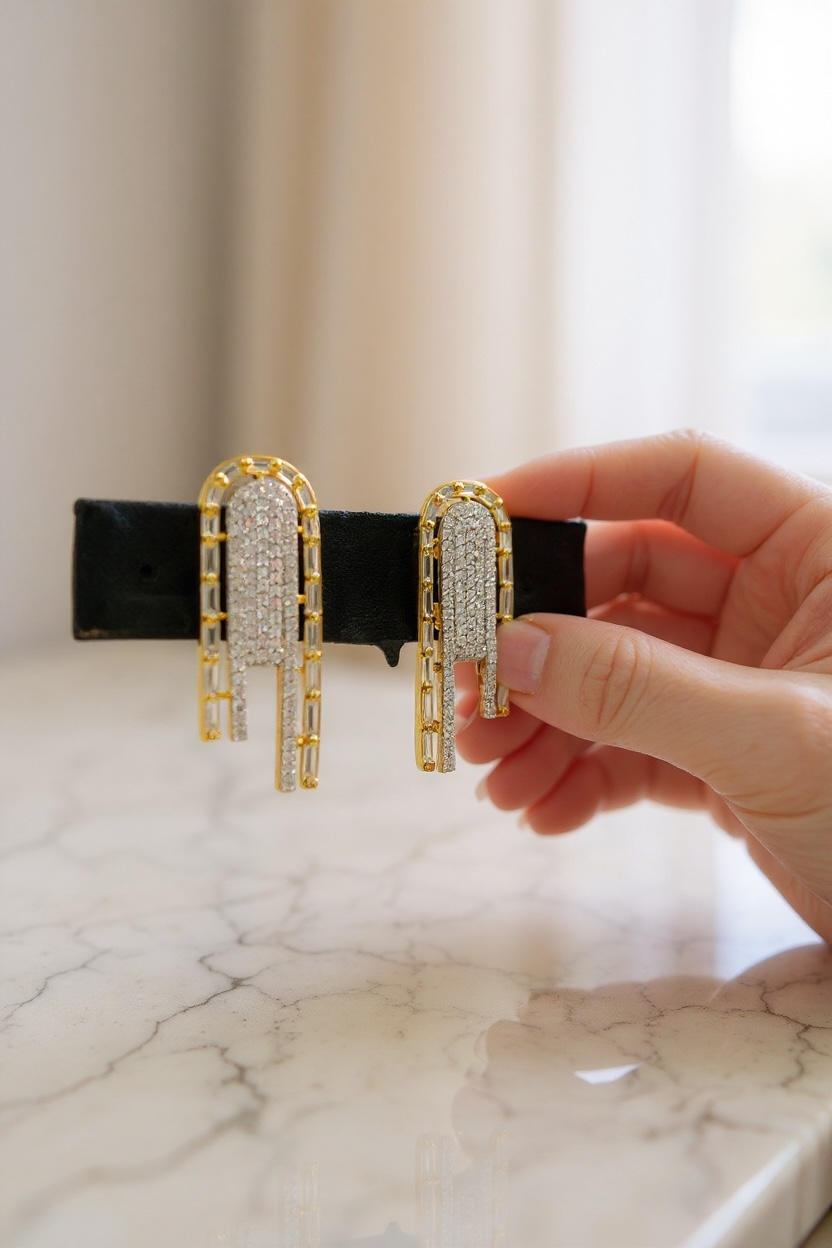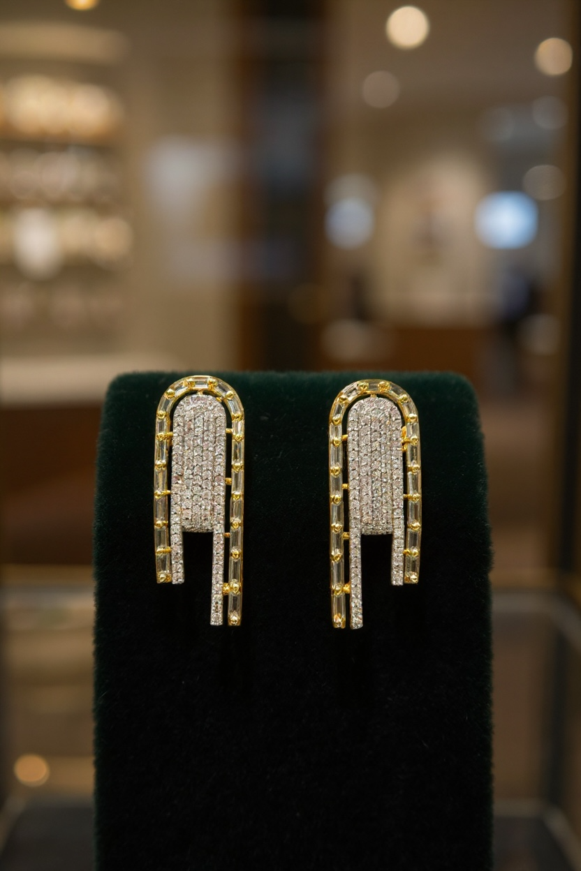 Add a touch of elegance to your evening look with our dual tone AD stone earrings. The perfect accessory to pair with any evening dress, these earrings exude sophistication and style. Made with high quality materials, they are both durable and eye-catching. Elevate your look with these stunning earrings.