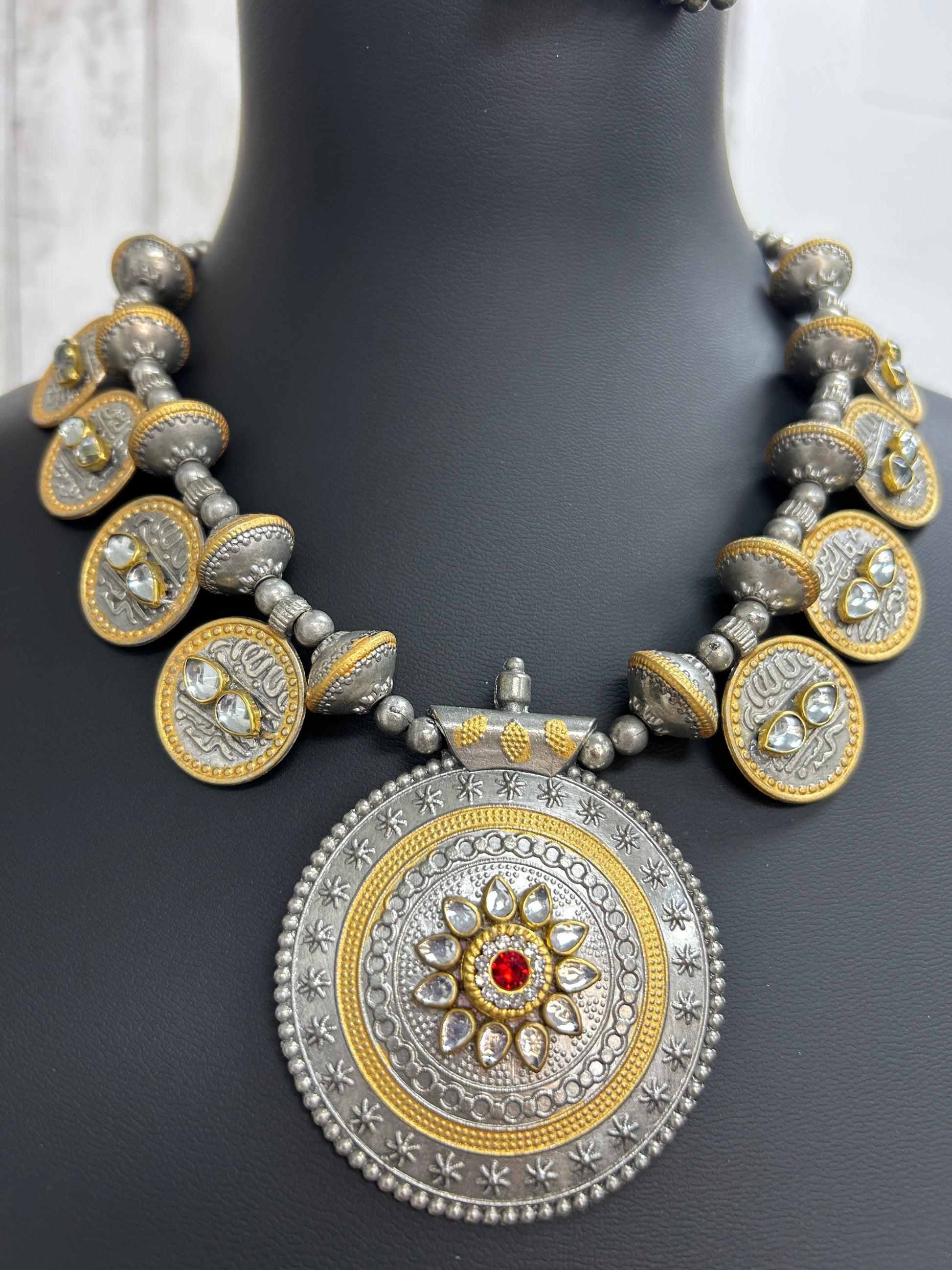 Dual tone oxidized necklace set