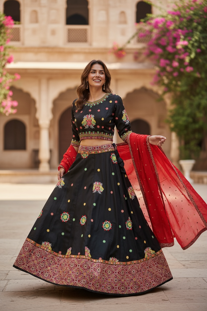 Experience the comfort of our Garba chaniya choli made of 100% cotton. With its lightweight and breathable fabric, you can dance all night without feeling weighed down. Perfect for traditional festivities, this chaniya choli will keep you looking stylish and feeling comfortable all night long.
