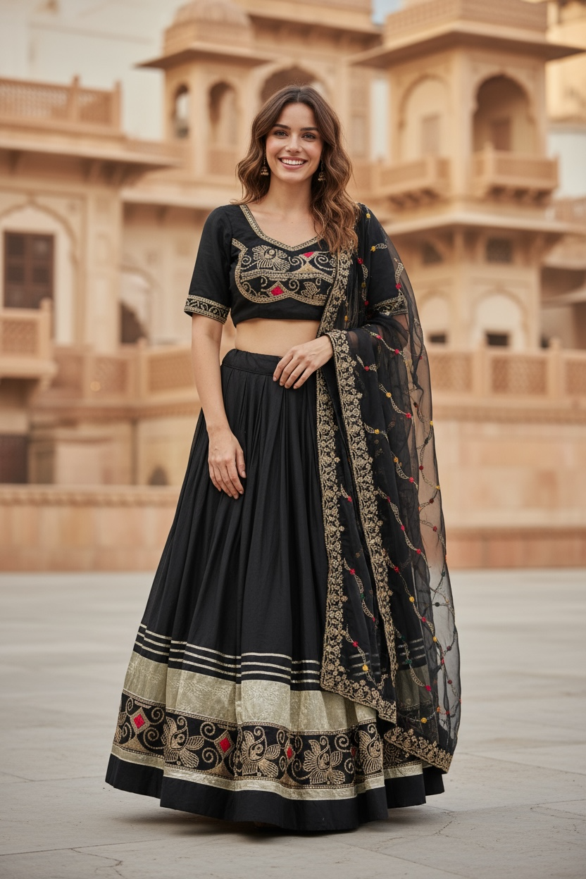 Experience the comfort of our Garba chaniya choli made of 100% cotton. With its lightweight and breathable fabric, you can dance all night without feeling weighed down. Perfect for traditional festivities, this chaniya choli will keep you looking stylish and feeling comfortable all night long.