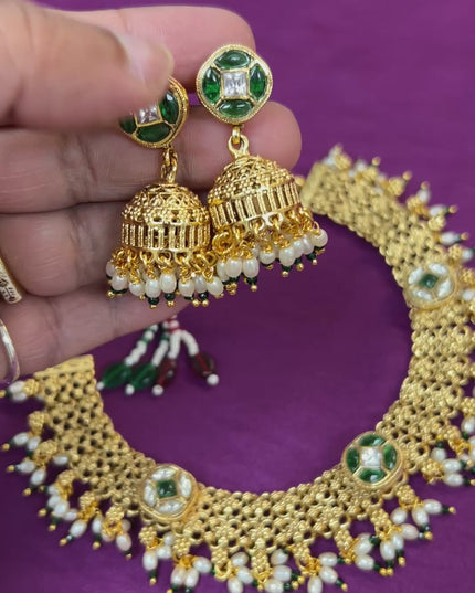 This elegant necklace features a traditional gold design, adding a touch of sophistication to any outfit. Handcrafted by skilled artisans, it showcases intricate details that resemble genuine gold without the hefty price tag. Elevate your jewelry collection with this timeless piece.