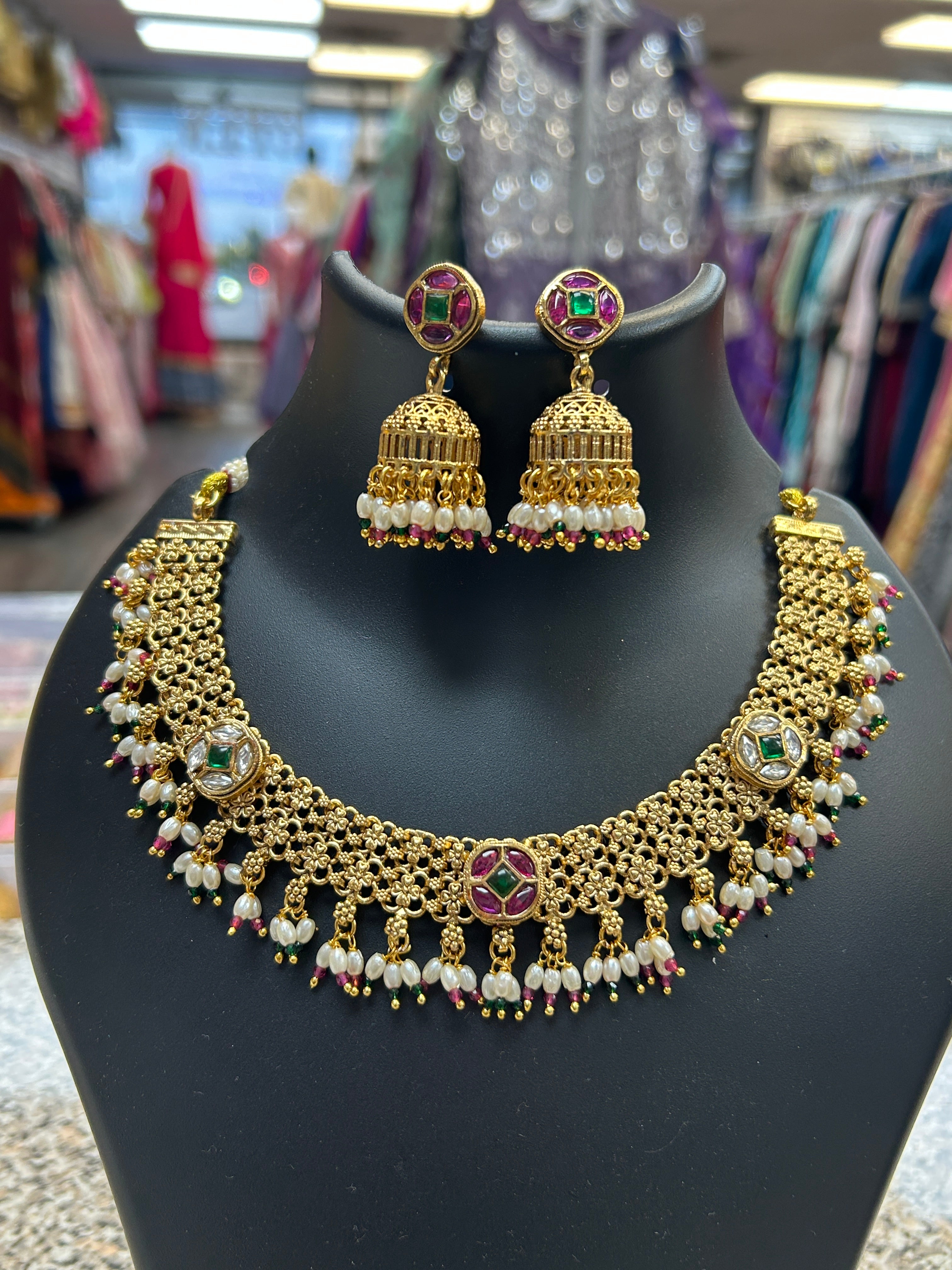 Simplify your outfit with our Gold Polished Necklace Set, made of high-quality imitation jewelry. The perfect accessory for any occasion, adding a touch of elegance to your look. No need for expensive real gold when you can have the same luxurious look for less.
