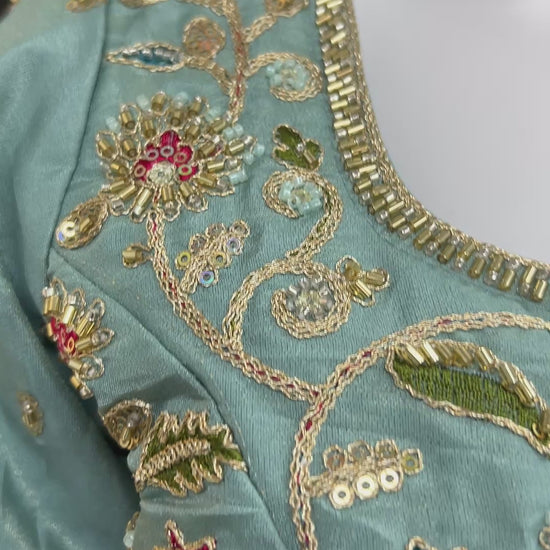 Hand embroidered blouse | tissue silk blouse with all over hand embroidery