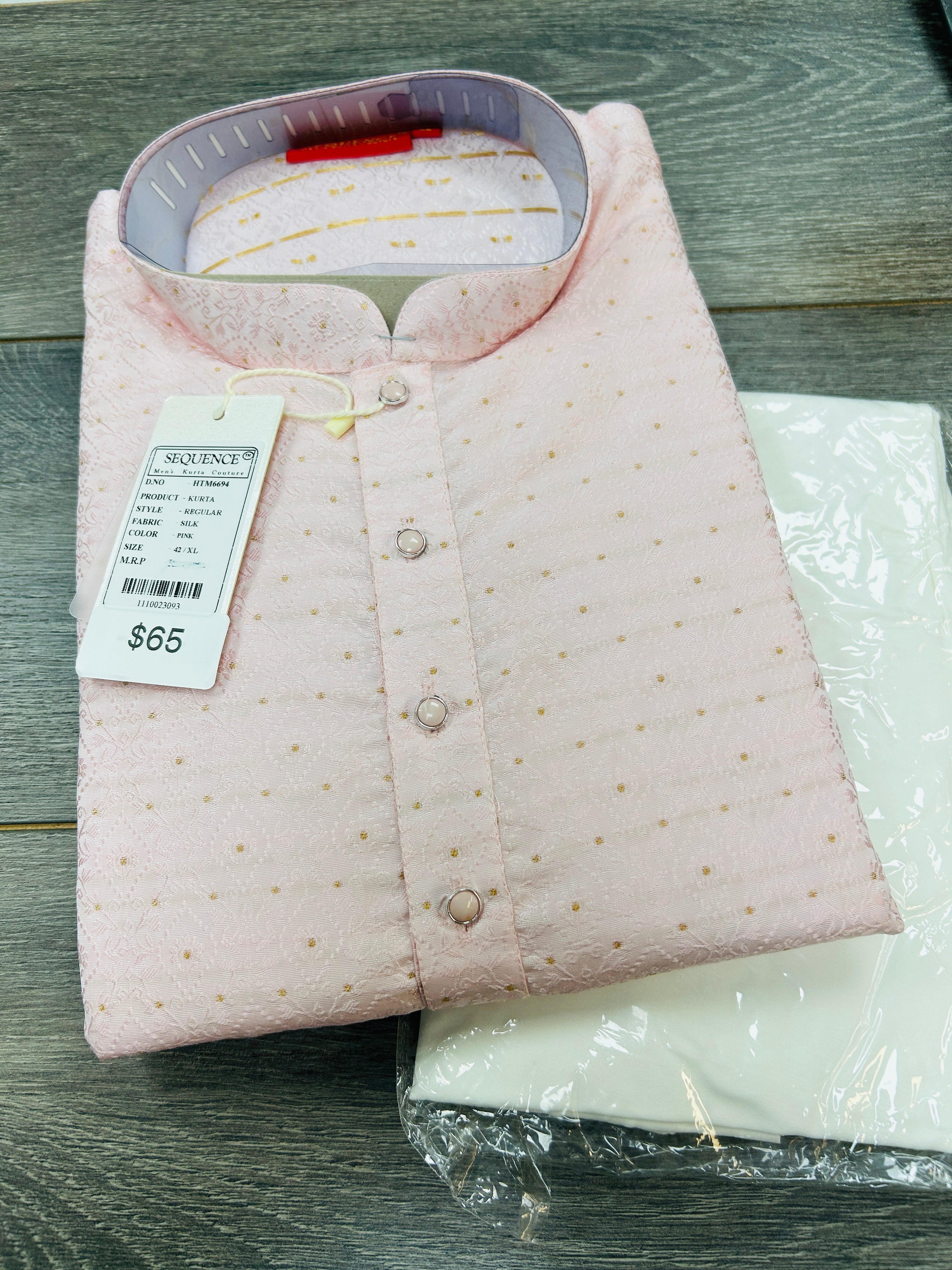 This light pink kurta pajama set features a traditional kurta crafted from high-quality fabric for a comfortable and stylish fit. Perfect for any occasion, this set offers a touch of elegance and versatility to your wardrobe. Upgrade your traditional wear with this expertly crafted kurta pajama set.