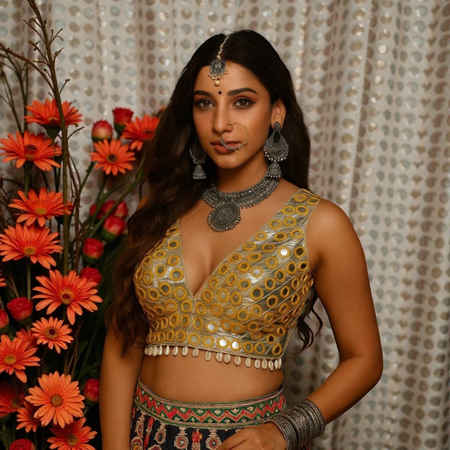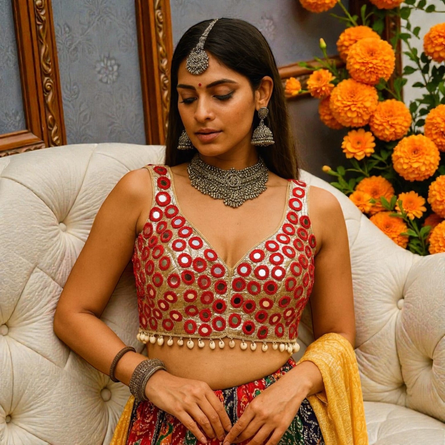 Mirror and shells work blouses