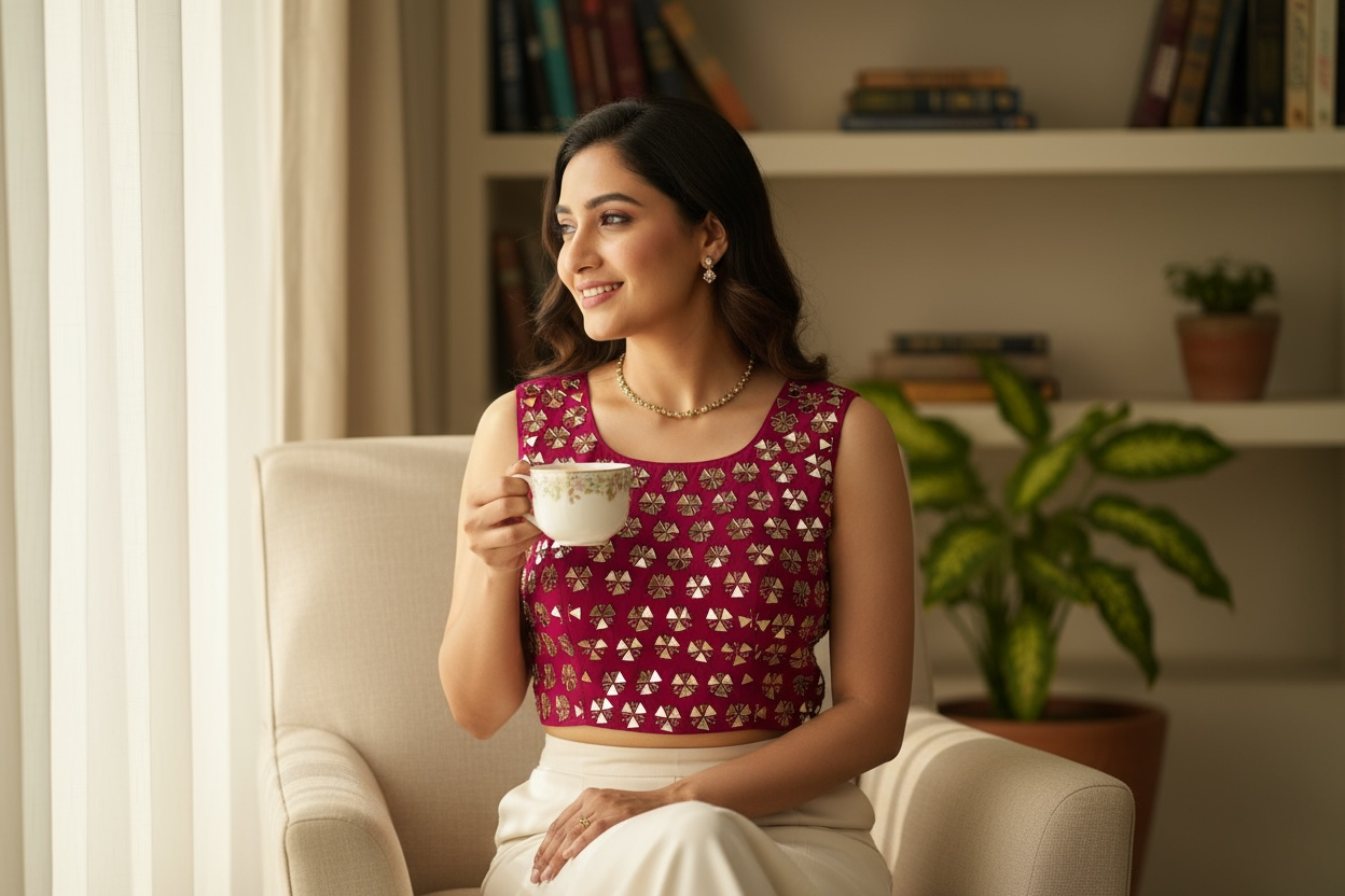 **Elegant Ready-to-Wear Blouse - Inbuilt Cups | Comfortable & Adjustable Fit**
