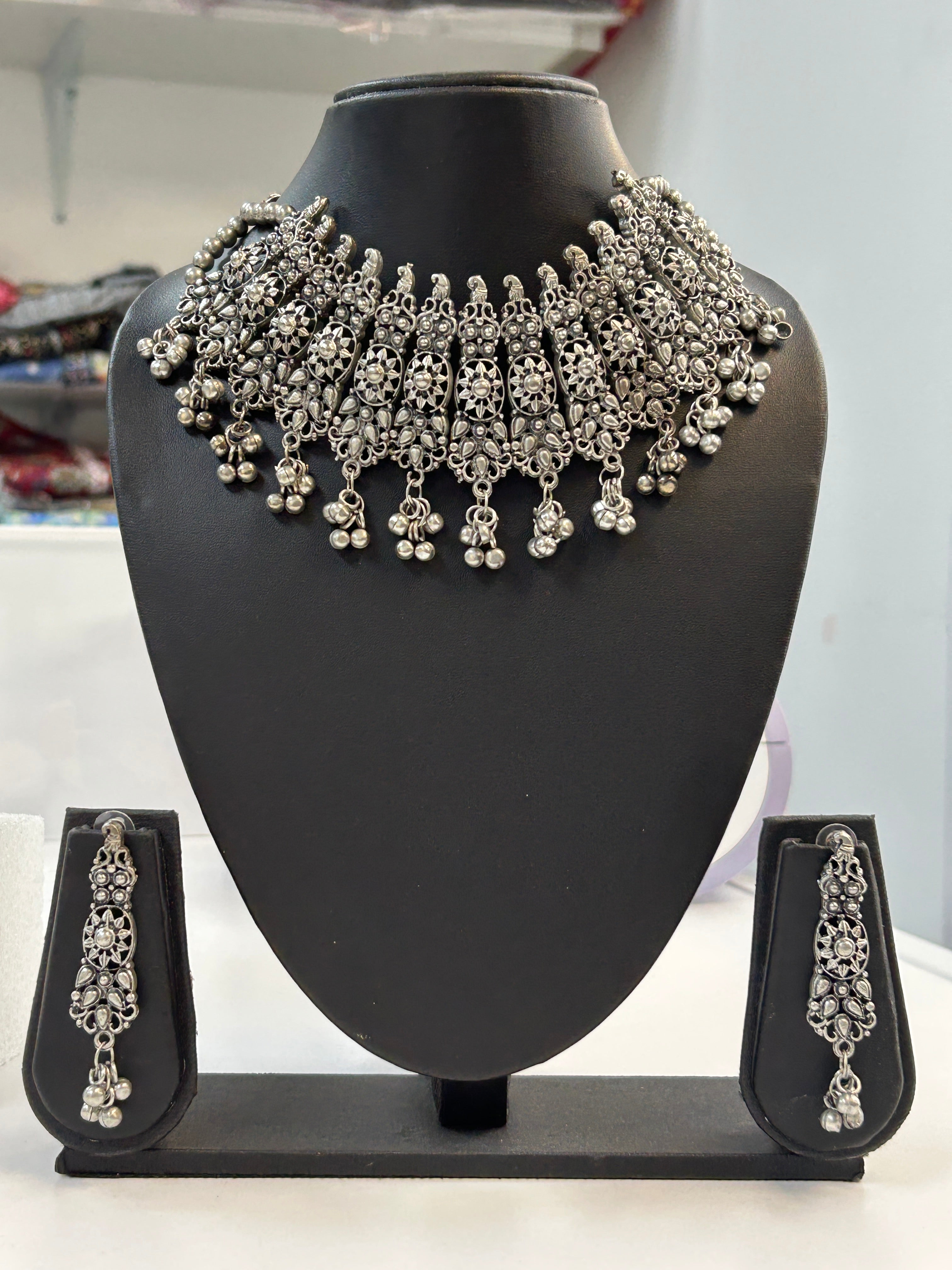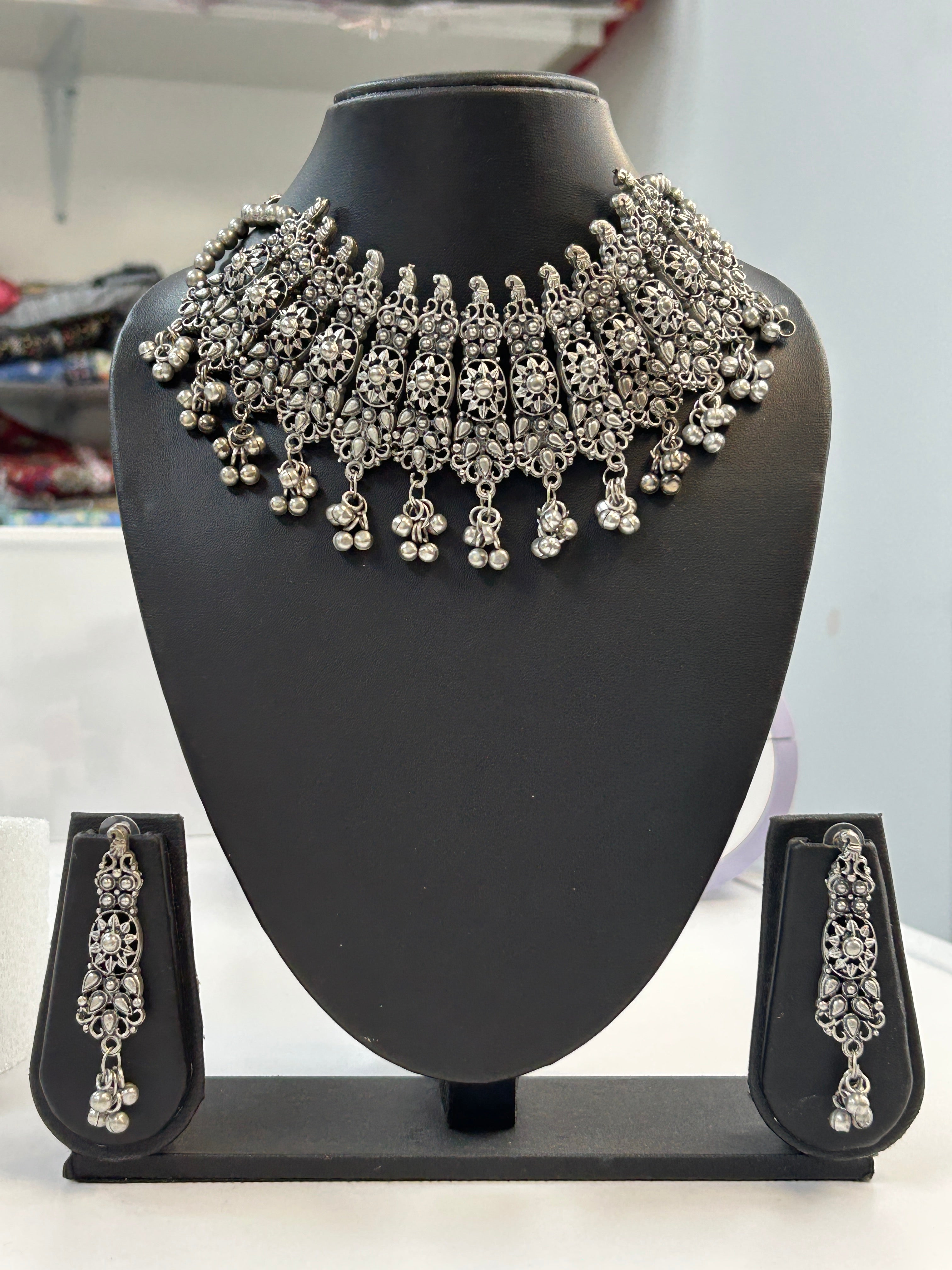 Product form Oxidized silver necklace set : choker $40.00 Choker set Read more Read more Free pickup in our shop(s) SKU: P0975S Barcode: 24164709 1 in stock Show extra info for delivery time Add to cart This item is a recurring or deferred purchase. By continuing, I agree to the cancellation policy and authorize you to charge my payment method at the prices, frequency and dates listed on this page until my order is fulfilled or I cancel, if permitted. Shipped today? Order within: Oct 06, 2025 17:00:00 -0500 Reviews 0 reviews Share with your friends Share WhatsApp Deel X Pin it Messenger Email Need help with your size? Size finder Description Choker set