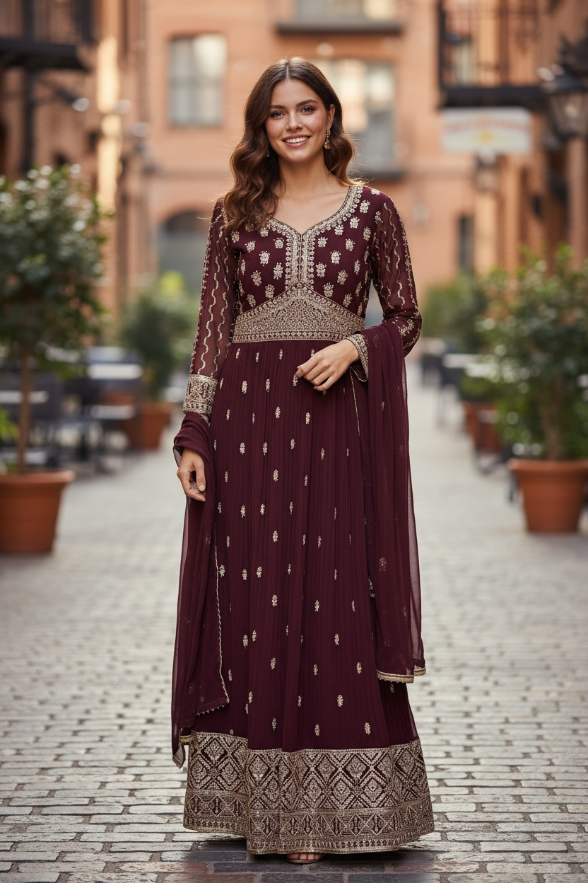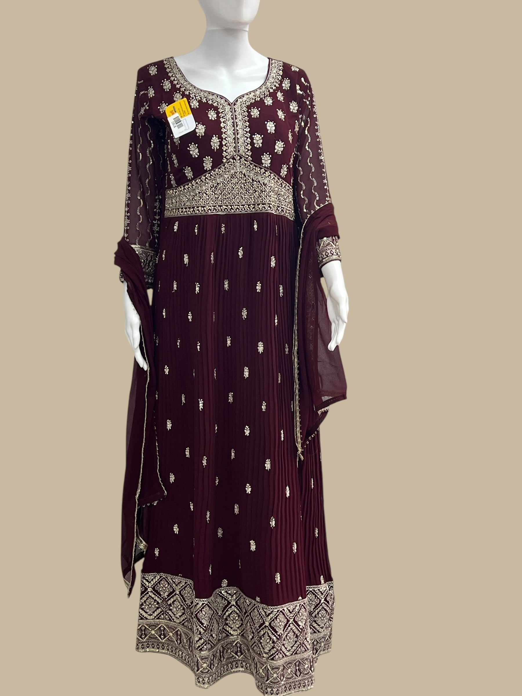 Product form Party wear long gown : wine color $180.00 Comes with dupatta Read more Read more Free pickup in our shop(s) Size 40 (US SMALL ) Barcode: 12090 1 in stock Show extra info for delivery time Add to cart This item is a recurring or deferred purchase. By continuing, I agree to the cancellation policy and authorize you to charge my payment method at the prices, frequency and dates listed on this page until my order is fulfilled or I cancel, if permitted. Shipped today? Order within: Oct 06, 2025 17:00:00 -0500 Reviews 0 reviews Share with your friends Share WhatsApp Deel X Pin it Messenger Email Need help with your size? Size finder Description Comes with dupatta