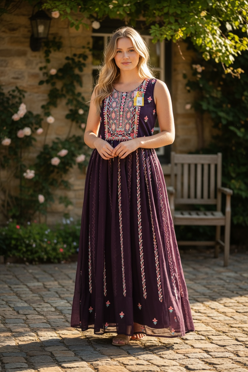 This Party wear long Kurti features short sleeves for added comfort and breathability. Crafted with high-quality materials, this elegant garment is perfect for any formal or festive occasion. Stay stylish and comfortable with this versatile Kurti.