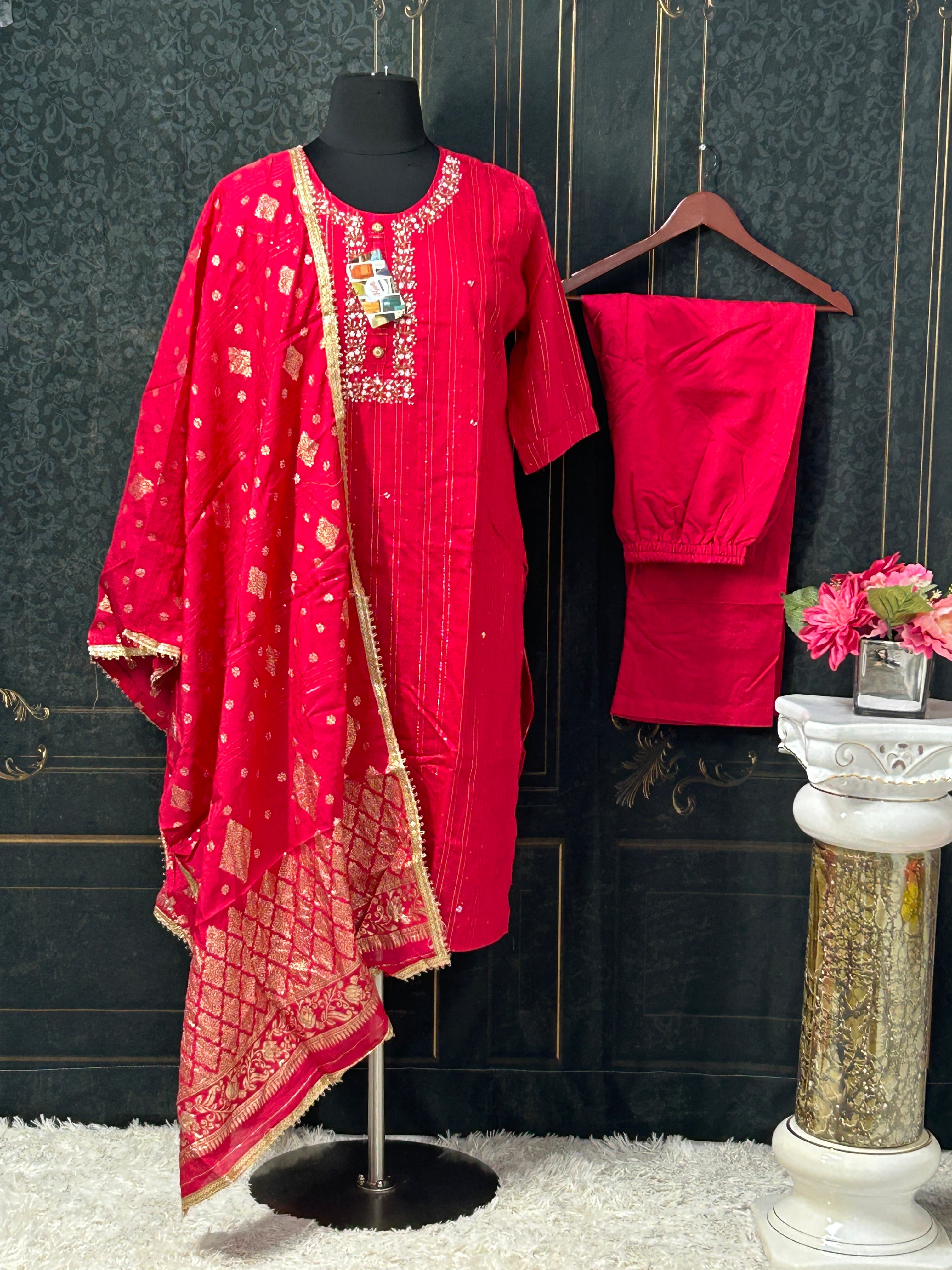 Introducing our Plus Size Salwar Suit, designed for comfort and style in size 50. With a plus size kurti, this suit offers a perfect fit and flattering silhouette for all occasions. Made with high quality materials and precision, our suit is the perfect choice for plus size women seeking a fashionable and comfortable outfit.