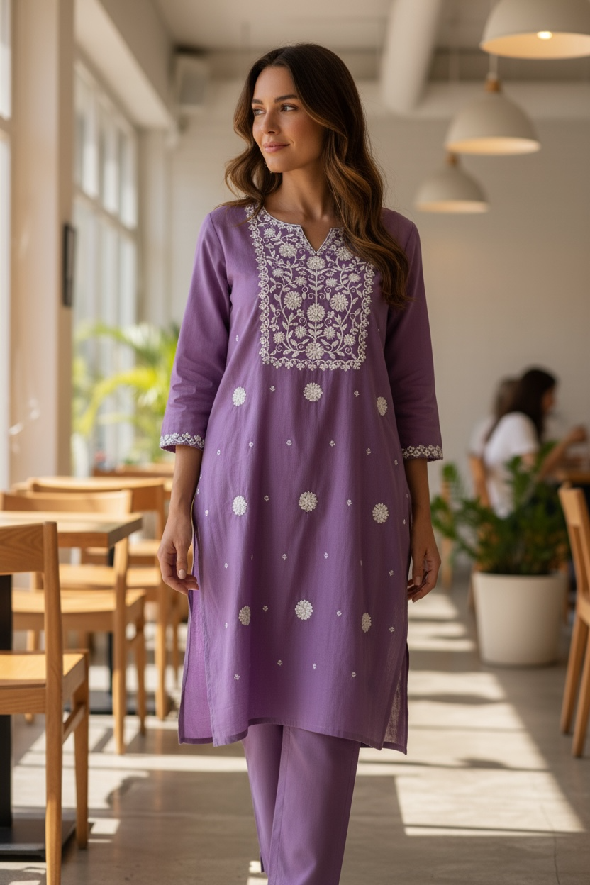 This co ord set features a short kurti and pant, making it perfect for a stylish and comfortable outfit. The kurti offers a modern twist on traditional fashion, while the pant provides a flattering and versatile bottom option. Look effortlessly put-together with this trendy and fashionable set.