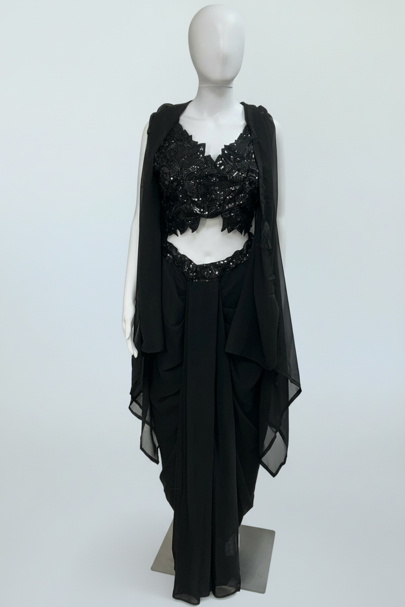 Readymade saree with shrug