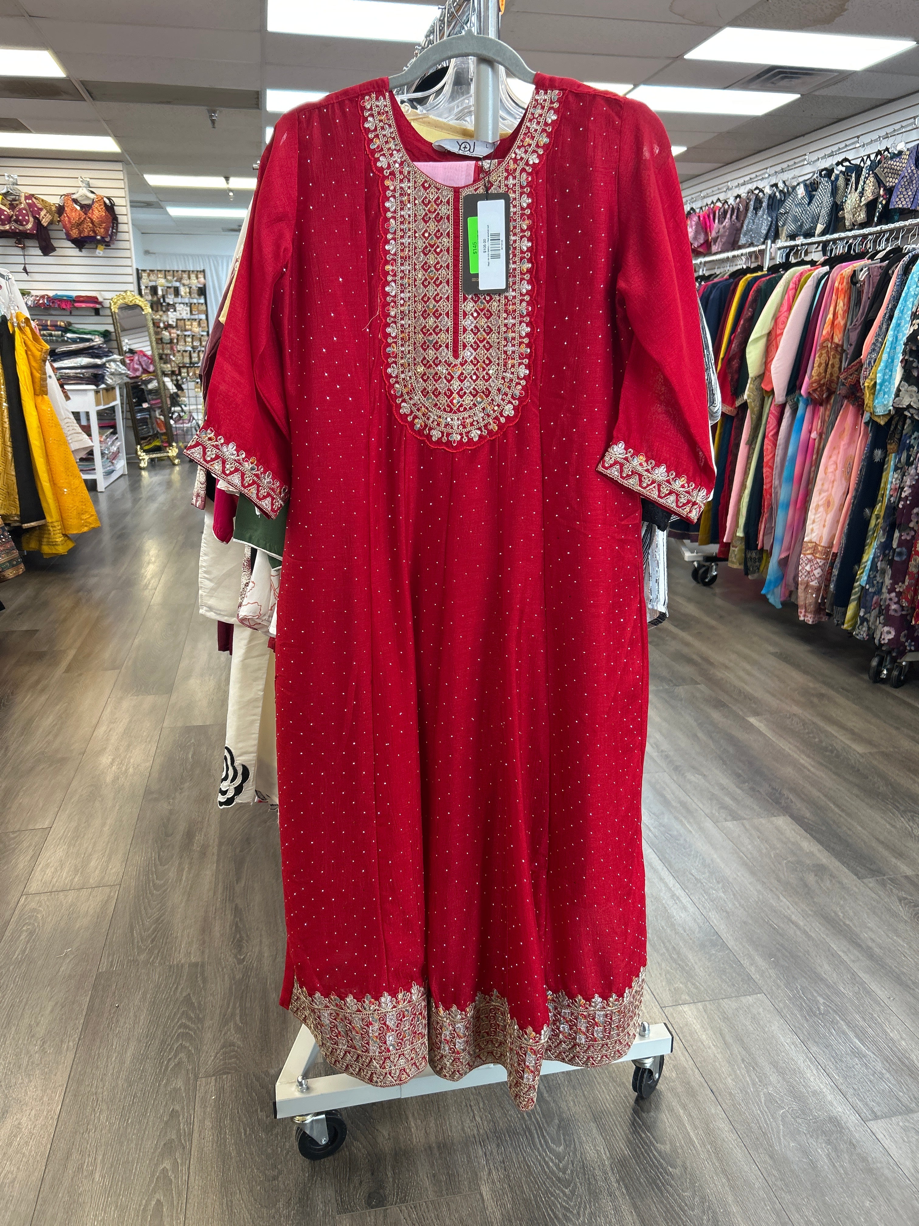 This elegant Red Anarkali suit is made from soft Chinon silk, offering a luxurious and comfortable feel. Perfect for any occasion, its timeless design and high-quality material are sure to make a statement. Elevate your wardrobe with this beautiful and stylish piece.