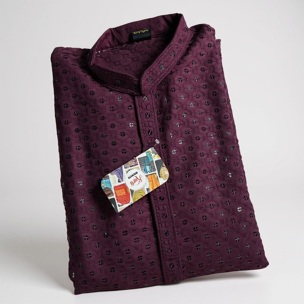 This sequin kurta set is the perfect addition to your wardrobe. Made with a size 48 fit, it offers a comfortable and stylish option for any occasion. The intricate sequin design adds a touch of glam while the size ensures a perfect fit. Elevate your look with this must-have piece.