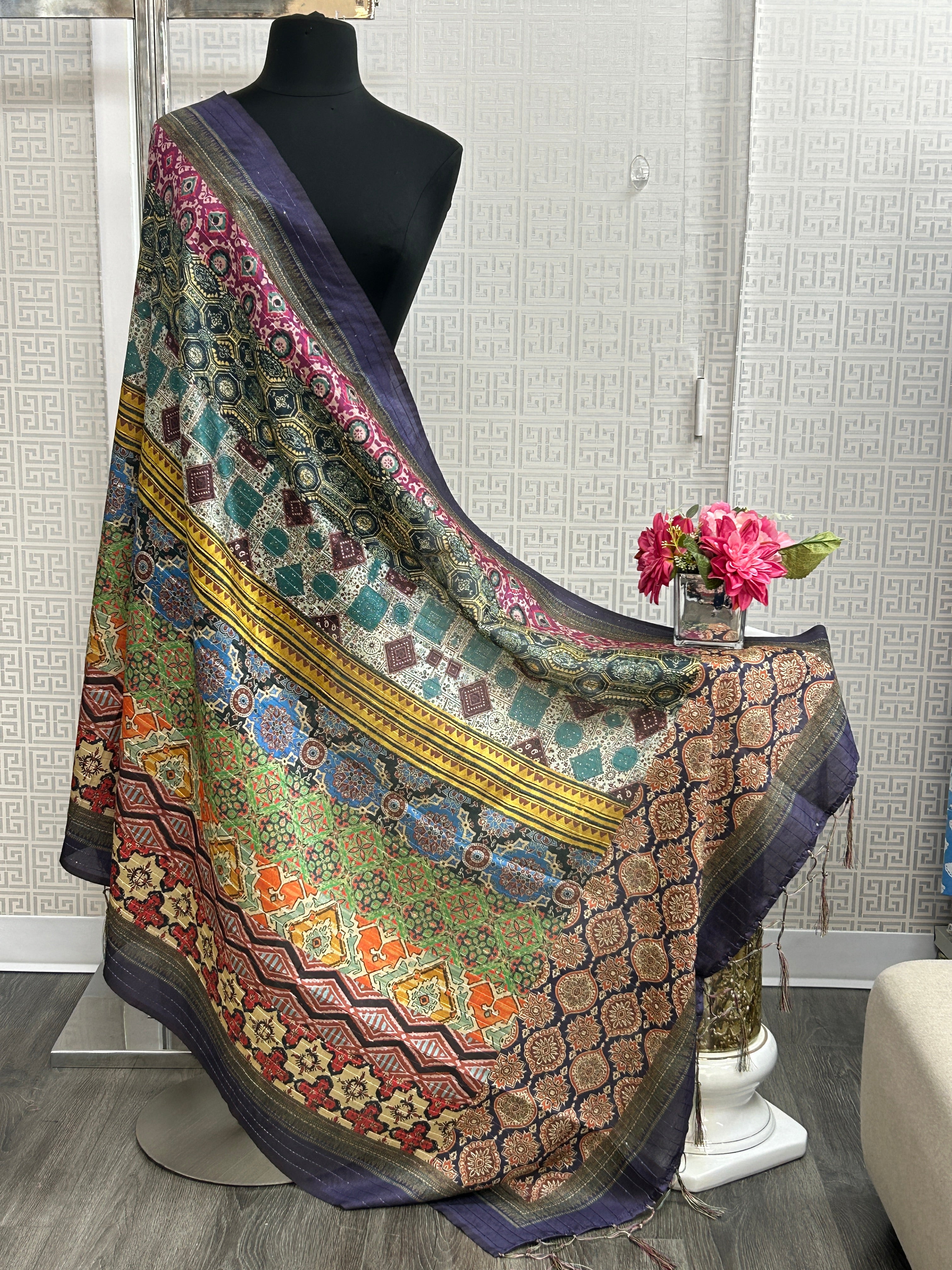 Update your wardrobe with our luxurious silk dupatta! Made from high-quality silk, it adds an elegant touch to any outfit. Its vibrant digital print makes it unique and eye-catching. Perfect for any occasion, this dupatta is a must-have for any fashionista looking to elevate their style.