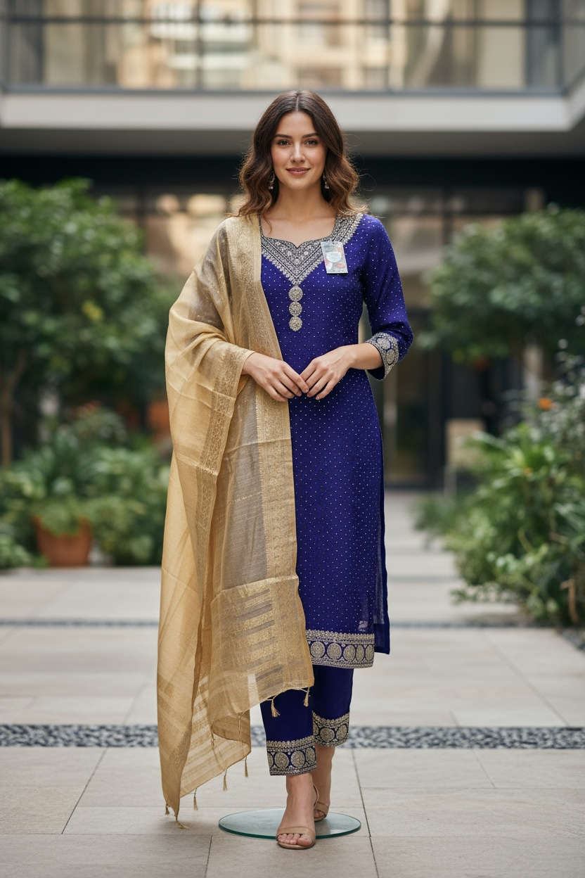 Product form Silk salwar suit $85.00 Salwar suit Read more Read more Free pickup in our shop(s) 38/ US XS 40 (US SMALL ) 42 (US M) 44 (US LARGE) Size 38/ US XS 40 (US SMALL ) 42 (US M) 44 (US LARGE) Barcode: 49122405 1 in stock Show extra info for delivery time Add to cart This item is a recurring or deferred purchase. By continuing, I agree to the cancellation policy and authorize you to charge my payment method at the prices, frequency and dates listed on this page until my order is fulfilled or I cancel, if permitted. Shipped today? Order within: Oct 18, 2025 17:00:00 -0500 Reviews 0 reviews Share with your friends Share WhatsApp Deel X Pin it Messenger Email Need help with your size? Size finder Description Salwar suit