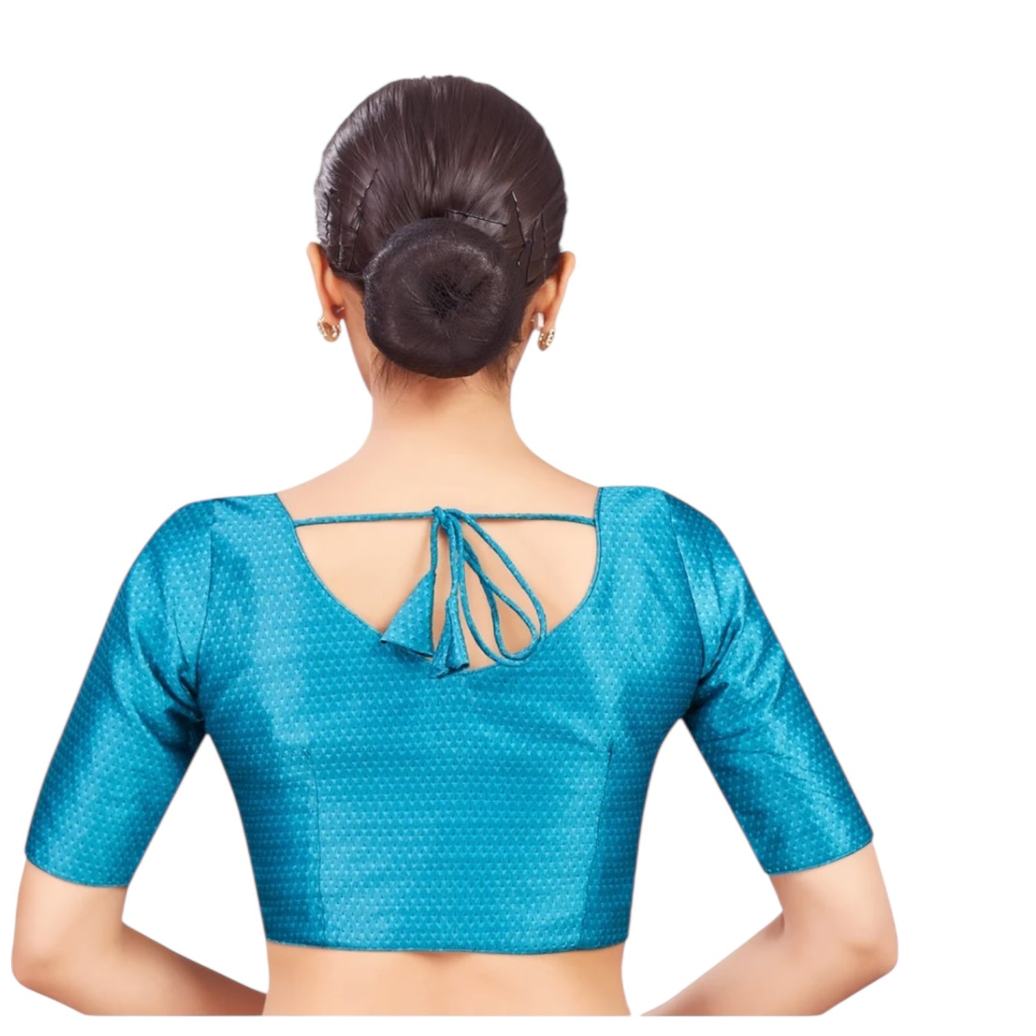 This teal blue blouse features convenient front hooks, making it easy to put on and take off. The front hooks also provide a secure closure, ensuring the blouse stays in place all day. Elevate your wardrobe with this functional and stylish blouse.
