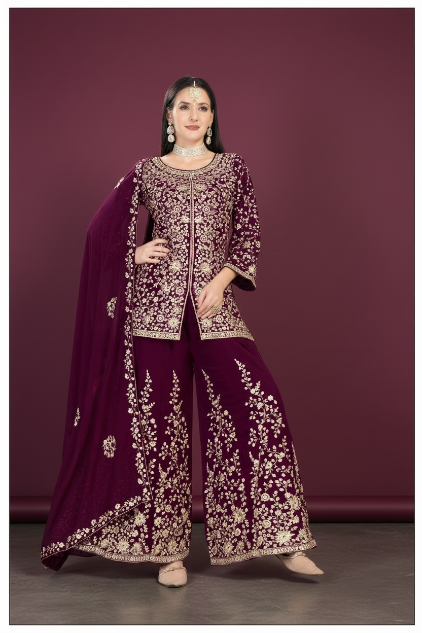 Expertly crafted for the special occasions, our Heavy Party Wear Sharara Set combines the elegance of georgette with intricate embroidery work. Perfect for those who appreciate quality and style, this set promises to elevate your outfit and make you stand out from the crowd.