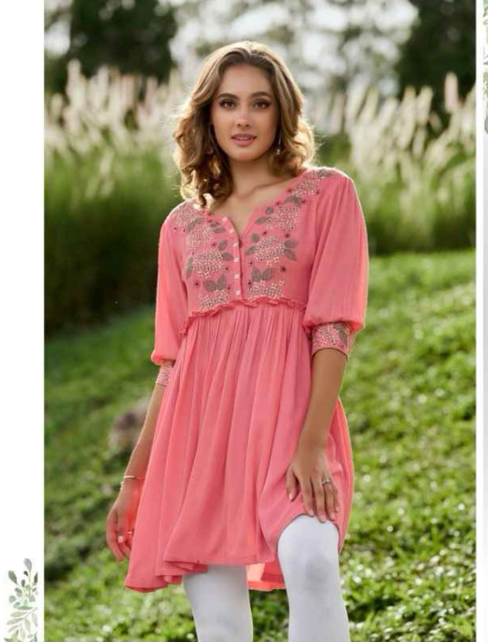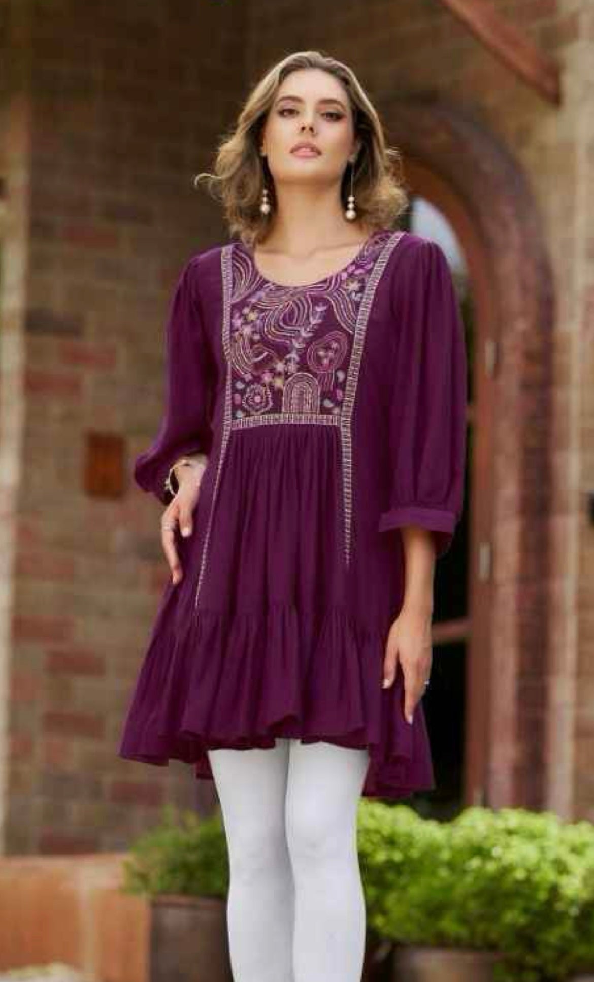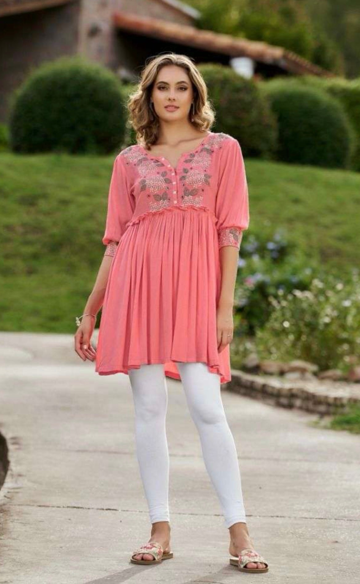 Expertly crafted with rayon silk material, Vamika tunic tops and short Kurtis offer a lightweight and luxurious feel that drapes beautifully. Combining comfort and style, these versatile pieces are perfect for any occasion. Upgrade your wardrobe with these high-quality and trendy tops.