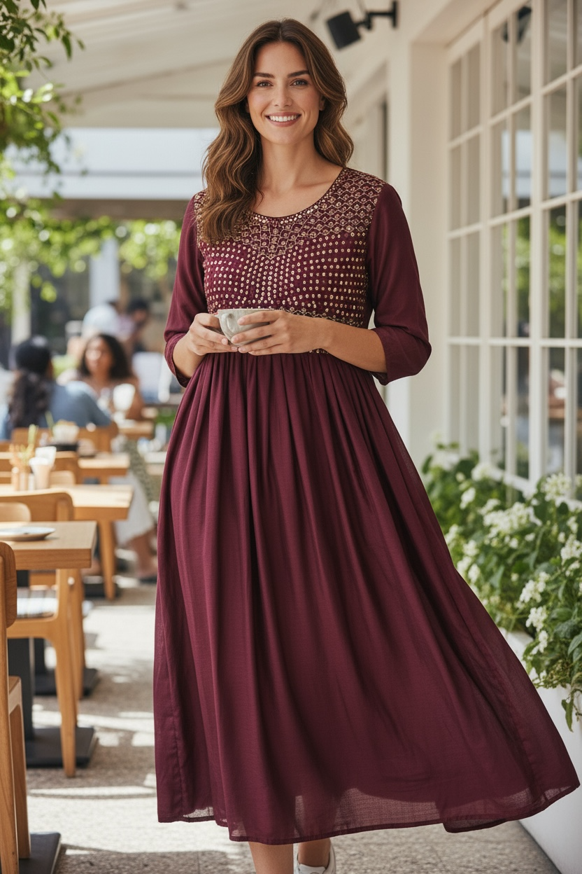 This Vichitra silk kurti is designed with a longer length for added comfort and versatility. Made from high-quality silk, it offers a luxurious feel and drapes beautifully on the body. Perfect for any occasion, this long kurti will elevate your wardrobe with its elegant and timeless design.
